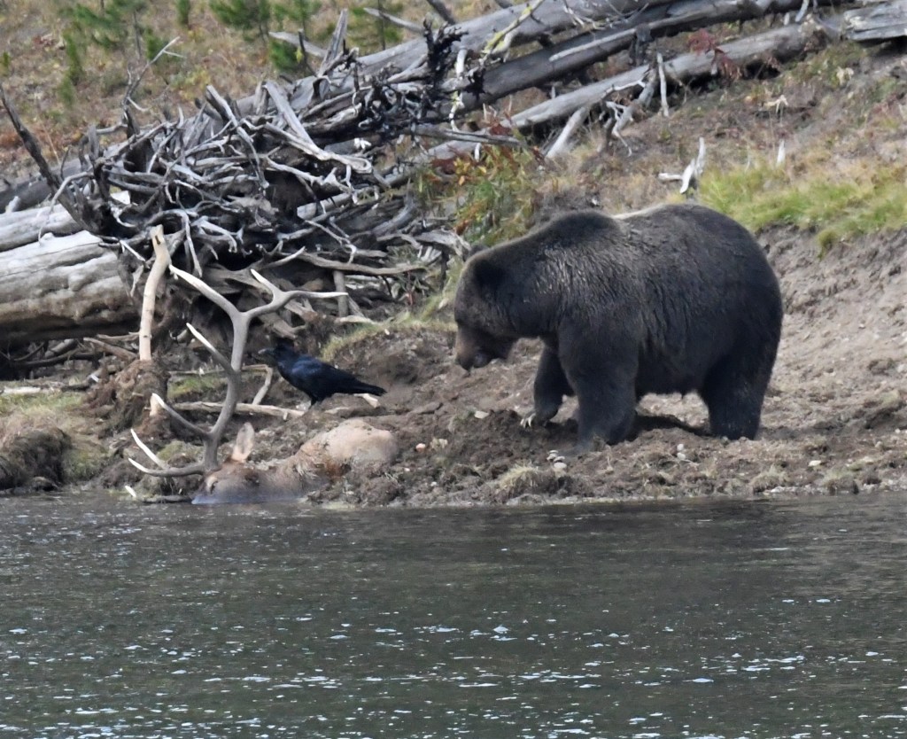 Bear took down elk in Yellowstone – spent days bulking up for his winter hibernation. I was lucky enough to observe a visitor – a wolf – who was hungry and wanted to share in the feast. Remember, I don’t eat meat so this was hard to watch, but fascinating at the same time.