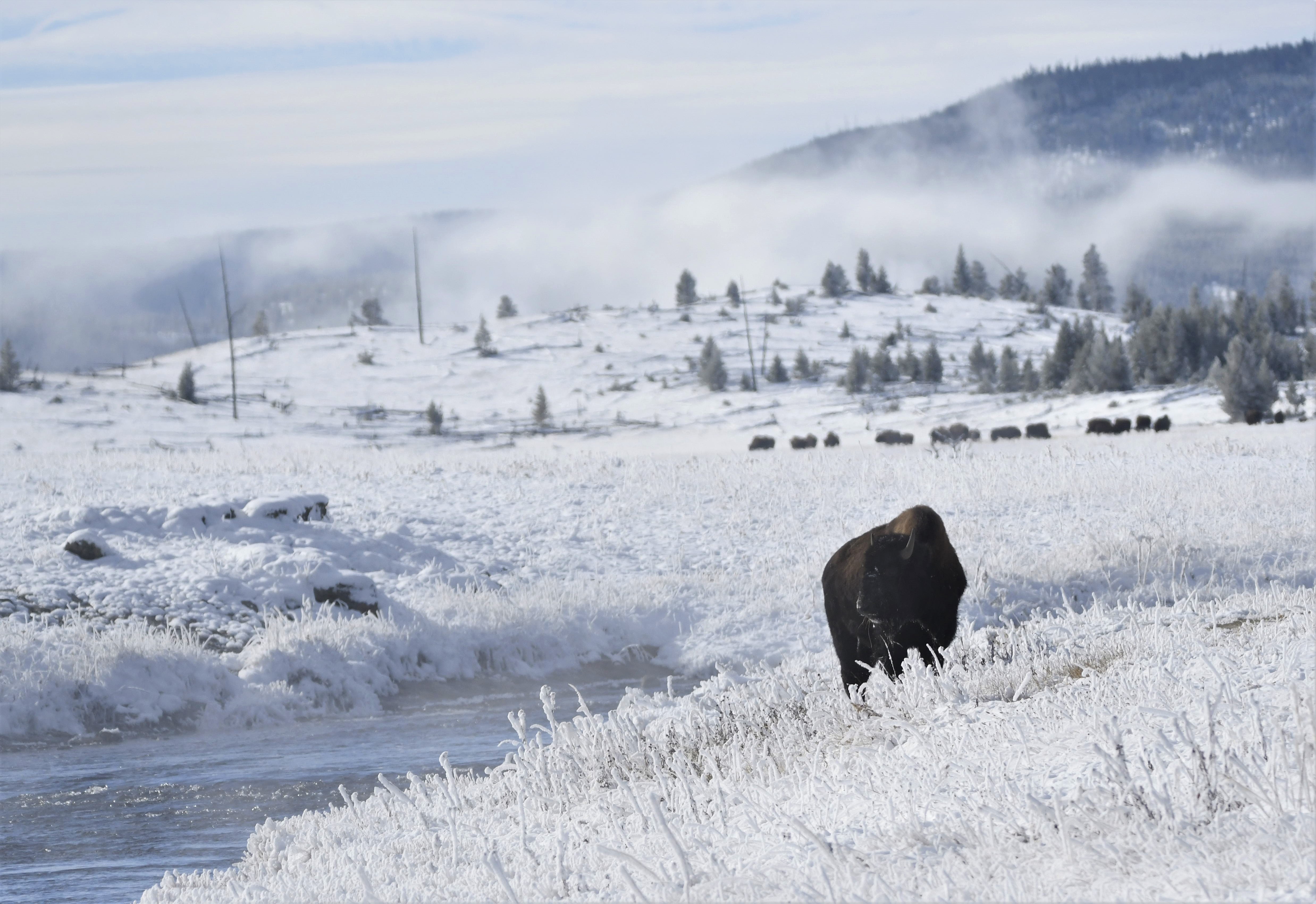 The amazing bison of Yellowstone. The snow was a blessing the day of our visit. What a beautiful sight!